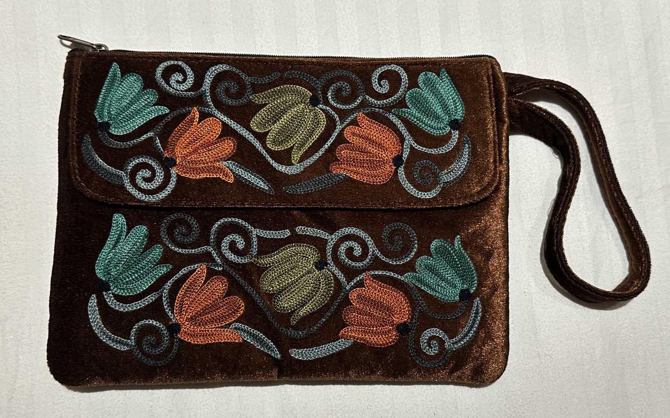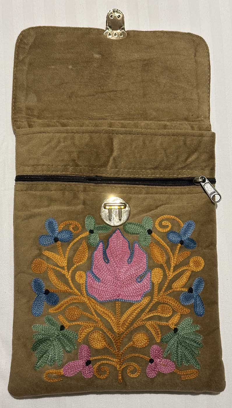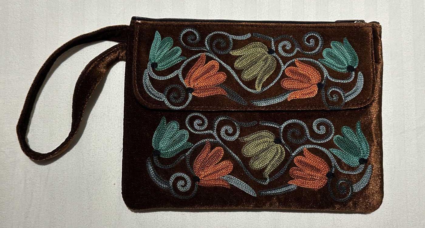 Discover the exquisite craftsmanship of Loominus Kashmir Bags, a collection of handmade suede leather bags featuring intricate Kashmiri work and aari embroidery. Each bag is a testament to the rich artistic traditions of Jammu and Kashmir, India, meticulously crafted by skilled artisans high in the mountains of Sonamarg.