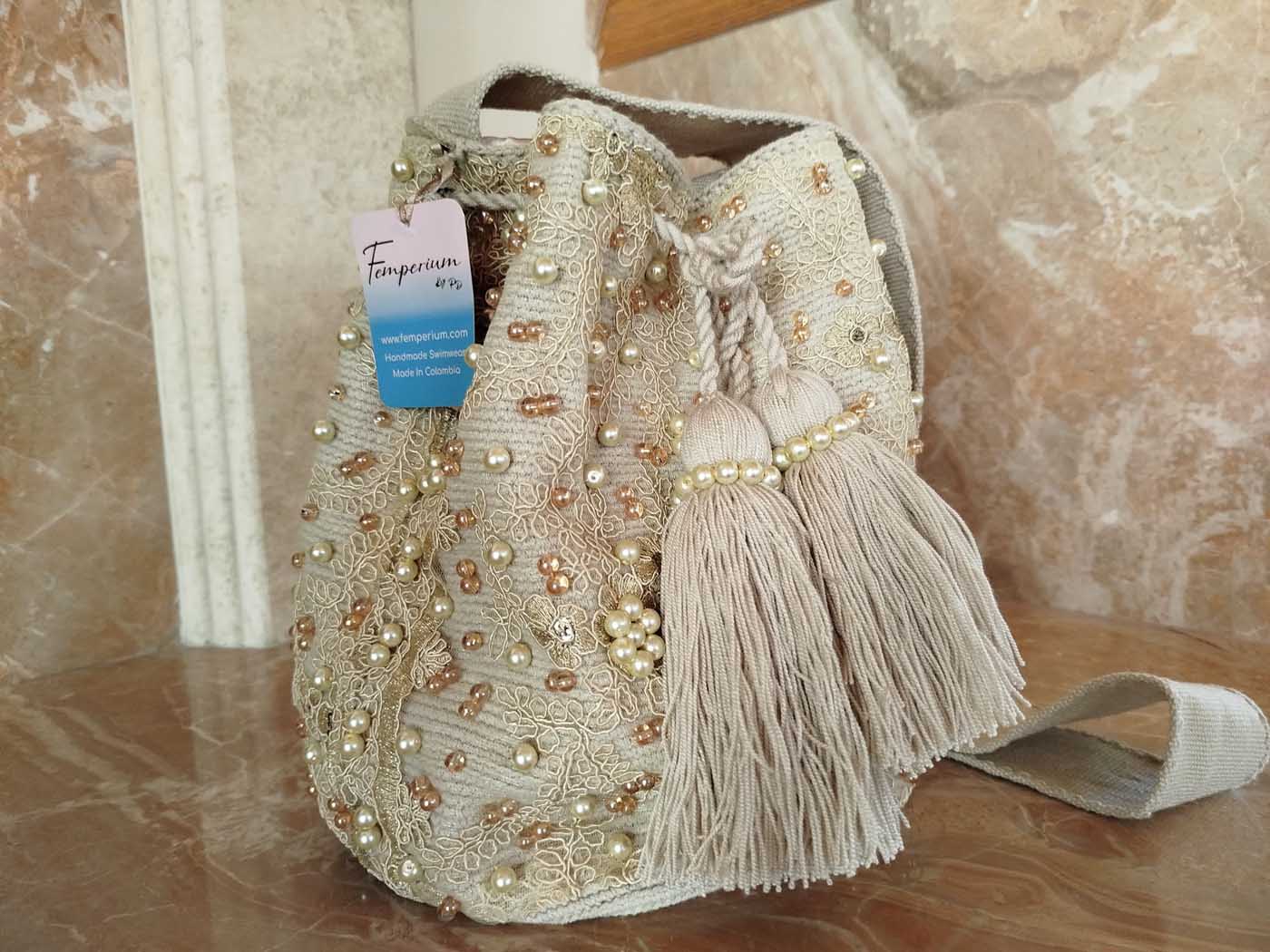 These exclusive Wayuu bags feature delicate hand embroidery by Paula Diaz, founder of Femperium, who brings her Andes mountains craftsmanship to each piece, creating a stunning fusion of two rich artistic traditions. No two bags are alike, making each purchase a true collector’s item.