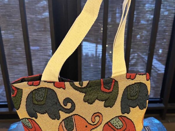 Elephant art, yellow shoulder bag from Thailand.